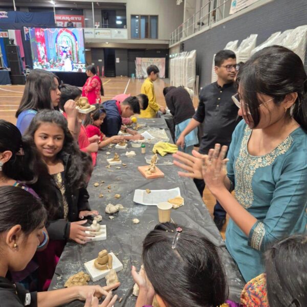 Khushi, Mili & Murthy from PaintingForCharity conduct free Clay Ganesh deity making workshop at the Ganeshotsava 2025 function organized by FOIA (Friends of India Australia) at…