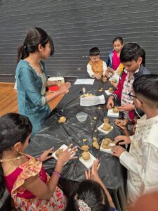 Khushi, Mili & Murthy from PaintingForCharity conduct free Clay Ganesh deity making workshop at the Ganeshotsava 2025 function organized by FOIA (Friends of India Australia) at Whitlam Center on 30th & 31st August. More than 65 kids were taught to make the deity of Lord Ganesha. The kids enjoyed the fun filled activity exploring their own creativity while they were learning about our tradition and connecting to our roots. This was a free activity for all the attendees. More than 6000 members attended and enjoyed the event over the period of 2 days.